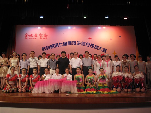 湛师新闻网5月9日讯 7日晚上,“金池聚宝斋”教科院第七届师范生综合技能大赛之才艺比赛决赛在湛师附中体育馆内隆重举行。教科院党委王列盈书记,张旭东院长,郭和才副书记,许占权副院长,湛师附中林文良校长、团委陈振伟书记,以及教科院各班班主任出席了此次大赛。肖庆玲老师、黎一飞老师和雷莹辉老师担任此次大赛的评委。本次比赛共有14个班同场竞技。