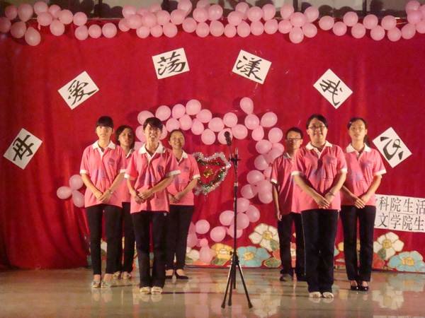 晚会在数科院文工团朗诵队的朗诵声中拉开了序幕。一首歌,一声呼喊,一个动作,母爱是那么清晰。人文学院的《妈妈》合唱、数科院的《我们是一家人》手语表演、“雷雨”话剧社表演的《等》等节目让在场的观众都真切地感受到母亲无私的爱与辛勤的付出。