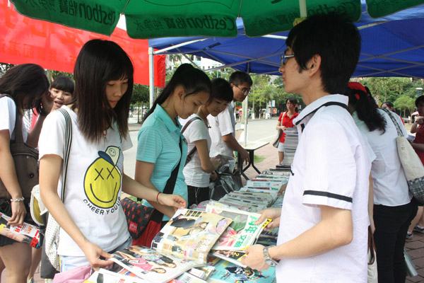 活动前,人文学院实践部及09对外、09中本一团支部进行了周密的活动策划,发动人文学院学子捐赠各类书刊500余册,活动以无偿捐赠、书籍交换等形式吸引校内同学参加。活动的开展吸引了大量的同学踊跃参与,各位同学在享受书籍滋润的同时,也将自己的爱心献给了大家。前来捐书、换书的同学说“将自己闲置的书捐赠出来或交换不仅可以使书籍的价值继续存在,而且可以把爱心传递下去帮助他人,一举两得,创意不错,希望以后多举办此类活动。”虽然活动过程中烈日炎炎,但是各位志愿者都坚守着岗位,认真为前来参与活动的同学服务。