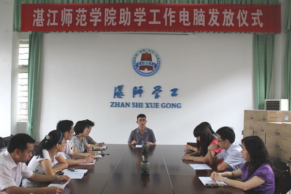 湛师新闻网5月5日讯 今天上午,紫荆楼301辅导员教育培训室隆重举行我校首次集体助学工作专用电脑的发放仪式。学生处黄达海处长、钟莉萍副处长、助学贷款中心和学生管理科负责老师以及各二级学院负责助学工作的辅导员代表参加了发放仪式。