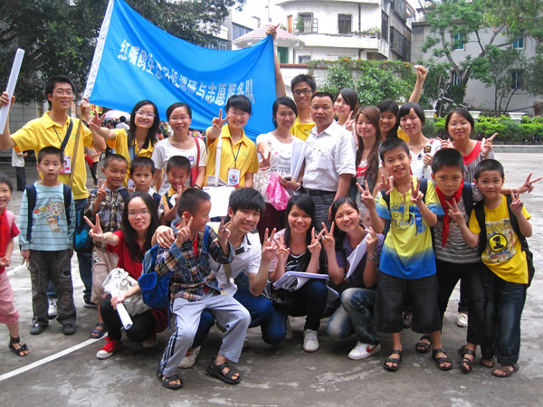 活动的举行得到二十一小学校领导的支持和积极配合,活动结束后该校领导和红嘴鸥服务队队员们在二十一小学的操场上合影留念。