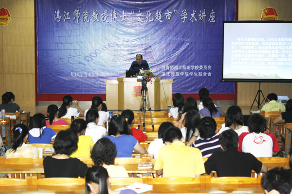 湛师新闻网4月29日讯 亲近学子,弘扬学术。27日晚,由校团委、校学生会主办的教授博士“文化超市”讲座第三十四期在学生活动中心举行,法政学院雷冬文博士主讲《儒家家庭伦理与近代会党组织规范》为题的学术专题讲座。