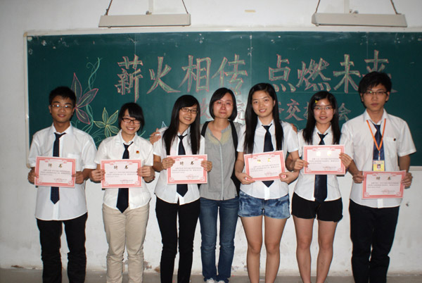 接着,赖老师发表了自己的感想。她指出,团委长期工作所取得的成果离不开全体干部的共同努力和辛勤付出。各干部在团委工作不仅提高了能力,也收获了友谊,这是一笔珍贵的财富。此外,她还对第八届干部提出了以下两点建议:一是多从前辈身上吸收经验,在继承他们的优良传统的同时加以创新,更好地做好自己的工作。二是把干部经历同自己的人生规划结合起来,努力学习,不断地提高自己的综合能力。