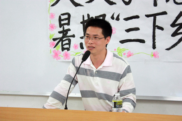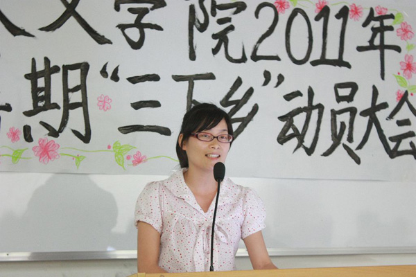 最后,冯基聪副书记作了该院2011年暑期“三下乡”社会实践活动动员讲话。他表示为2010年暑期“三下乡”活动所取得的骄人成绩感到高兴。为了动员更多的同学参加今年的实践活动中,他举了两个关于人文学院学生的例子,以此来说明社会实践经验丰富对大学生的重要性。他说,大学的学习固然重要,但书本外的实践也很重要。他希望同学们能在暑期走出校园,在社会锻炼。