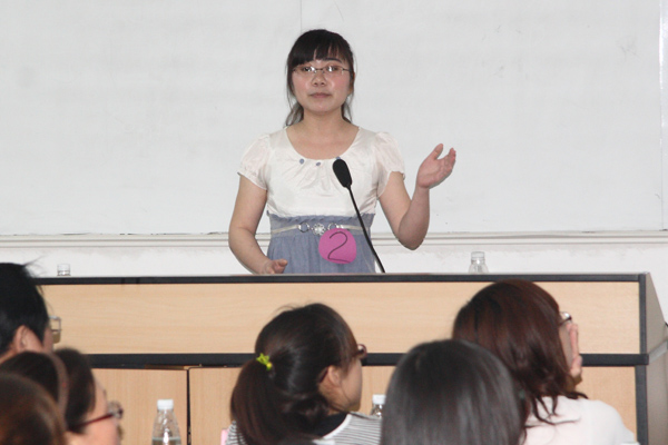 在刘晓玲老师作发言和该院英语教师技能协会会长讲解比赛环节及其意义后,15位参赛选手依次上台向在场观众展示及讲解自己设计的教案。他们结合PPT等多媒体,从教学目标、重难点、教学过程、教学反思等方面讲解了自己设计教案的思路。评委们还结合选手的讲解情况,有针对性地对其设计的教案提出相关建议和修改意见。
