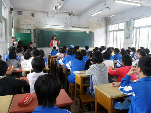 湛师新闻网4月23日讯 今天上午,我校英语口语爱好者协会的指导老师曹志希教授、外教Mayra老师,以及学生代表等到湛江市第七中学开展了支教活动。此活动包含课堂讲课、文艺表演、粘贴海报等环节。