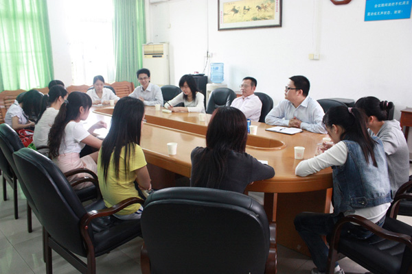湛师新闻网4月22日讯 昨天下午,人文学院就业服务中心在弘雷楼四楼会议室召开07级毕业生就业交流会。该院党委谢应明书记、冯基聪副书记、辅导员黄河老师以及几位毕业生代表出席了会议。