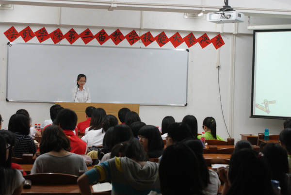 本次比赛是该院学生会学习部针对提高师范生教学技能而进行的以“秀说课之美,展教师之风”为主题的第三届教学技能大赛之决赛。比赛中,选手们运用多媒体平台,展示教案设计,并进行现场说课、模拟课堂等环节。一位位小老师通过生动的课堂讲解及精彩的知识问答将现场气氛推向高潮,赢得了同学们的阵阵掌声。