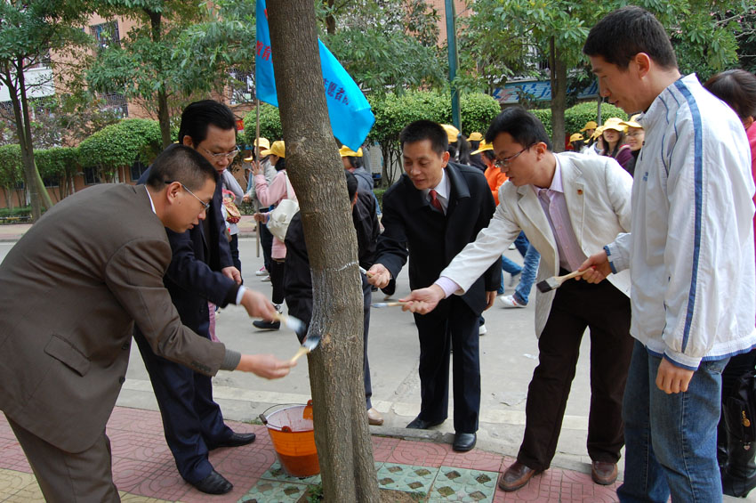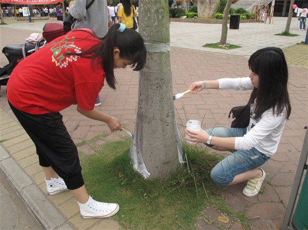 活动开始前,教科院青协实践部干部跟10级各支部团员在体育馆前举行了启动仪式。接着,志愿者们分工合作,各自到自己的岗位上进行涂白工作。在涂白活动过程中,教科院辅导员魏珂老师也加入了志愿者涂白的行列,与志愿者们一道,为树木进行了细致的涂白。从新区主校道一直到东门,志愿者们一丝不苟地把每一棵树木都进行了涂白。活动从早上一直开展到中午,志愿者们不怕苦,不怕累,顺利地完成了校园主校道两边树木的涂白工作,给校园的树木穿上了一件雪白的新衣,同时也为校园增添了一道靓丽的风景线。