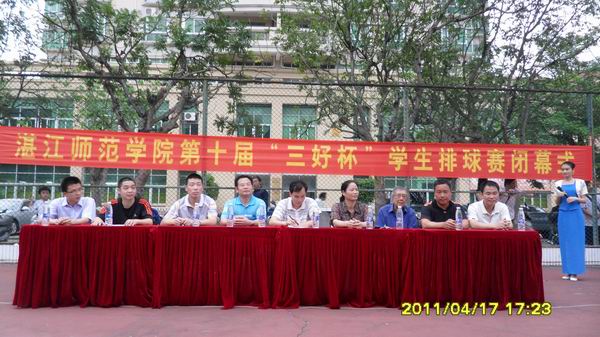 湛师新闻网4月19日讯 4月17日,由我校体育工作委员会主办,学生排球协会协办的湛江师范学院第十届“三好杯”学生排球赛于下午5点在燕岭区职工排球场落下了帷幕。其中体科院党委曹巧书记、人文学院谢应明书记、体科院欧美珍副院长、体科院公体部李刚主任、人文学院辅导员谢明亮和谭笑副教授以及第十届“三好杯”学生排球赛总裁判长刘荻老师、副裁判长许康成老师出席了本次闭幕式。