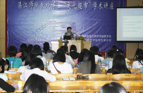 湛师新闻网4月17日讯 亲近学子,弘扬学术。15日,由校团委、校学生会主办的教授博士“文化超市”系列讲座第三十场在大学生活动中心举行,外语院的屈书杰教授为大家作了题为《到外国去——美国大学生海外留学面面观》的学术研究报告。