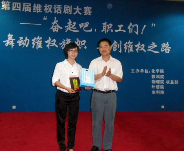 据悉,外语院《民工讨薪记》摘得桂冠并囊括了最佳创意奖和最具人气奖,数科院的《莫让悲剧重演》和生科院《我为农民工维权》获得二等奖,化学院《人间自有真情》、数科院《将维权进行到底》和物理院《职工们的春天》并列三等奖,体科院的《老农讨权》获得优秀奖。