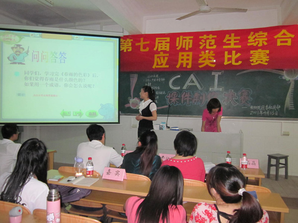 湛师新闻网4月17日讯 昨晚,教科院举行了第七届师范生综合技能比赛之“CAI课件制作大赛”决赛。信息学院张立敏老师、教科院李晶晶、卢祖琴老师作评委,信息学院电子协会部分代表作嘉宾出席了本次比赛
