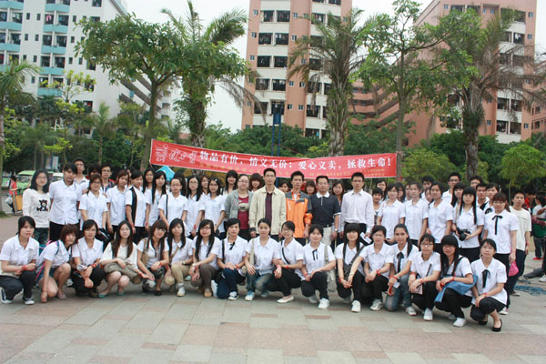 湛师新闻网4月16日讯 “物品有价,情义无价。爱心义卖,拯救生命。”自人文学院09中本(4)班陈历萍同学不幸患“急性白血病”,急需资金治疗的消息传开,得到广大师生以及社会各界的广泛关注。今天,由健力宝慈善基金捐赠的10000瓶健力宝在我校爱心义卖,为陈历萍同学筹集医疗费。人文学院党委谢应明书记、冯基聪副书记,辅导员詹绍姬老师、谢明亮老师、张家波老师亲自到场参与到本次活动中。