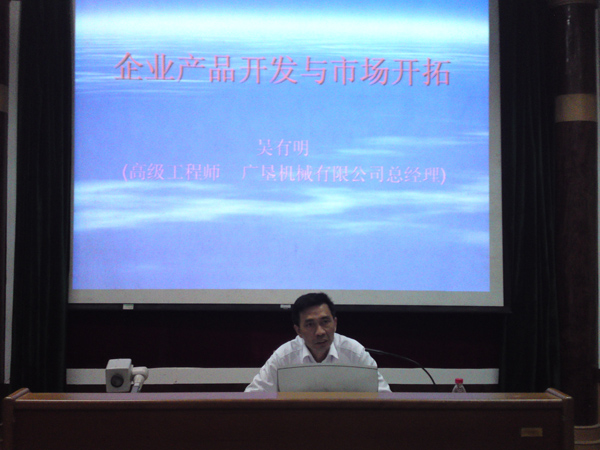 吴有朋总经理认为核心产品是决定企业生存和发展的前提,其中,他提到怎样开发核心产品是很重要的,开发核心产品需要对市场、企业及产品的敏感性。而提高敏感性需要扎实的专业知识、要善于观察、还要责任心和较强的事业感。他提到,要使企业得变大和变强的核心,本质任务是产品研发,而产品的研发需要大量的人才,所以重视人才是产品研发的关键,这就需要通过制度来培养人才。他说,仅仅是产品研发是不够的,市场的开拓是必不可少的。市场研销和市场调研为产品、企业和形象的定位起到关键作用。第四,一个企业要生存、发展,要具备人才素质、战术,战略和注重品牌创造、品牌效益。吴经理针对人才素质和个人能力等问题与学生进行交流,他认为做人要识礼,要宽容,要提高交往和写作能力。然后,进入互动环节,现场听众踊跃发言。