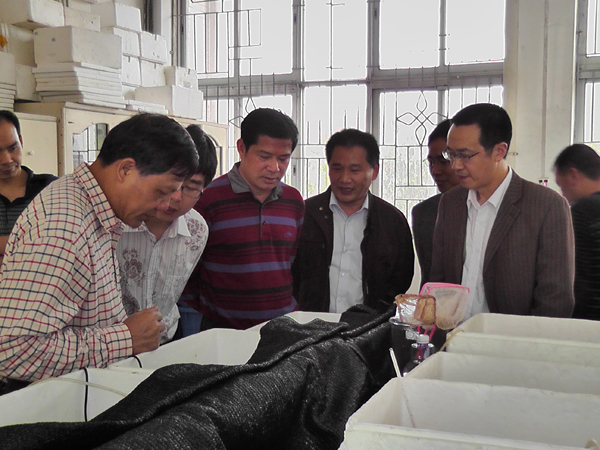 陈局长勉励研究团队及我校的科技工作者积极投身“产学研”,为当地的经济社会服务。认真贯彻落实市委刘小华书记所强调的“重点突破一批农业生产上的关键技术难题”的指示精神。当场他还表示,市科技部门要大力支持对产业结构调整影响深远、推广前景广阔的研究项目。希望该团队继续努力,为湛江海洋生物综合利用和保护做出更大的贡献,为做大、做优湛江的海洋经济蛋糕提供技术支撑!