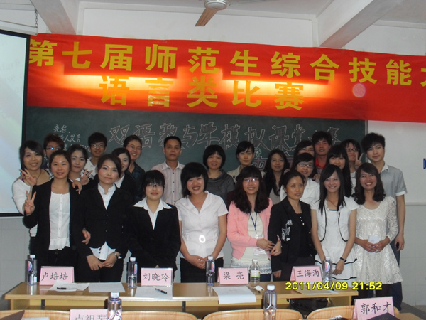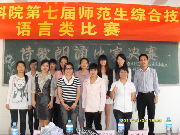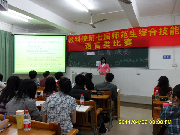 湛师新闻网4月10日讯 为展现教科院师范生风采,提升教科院师范生综合技能。昨日,教科院举行了第七届师范生综合技能大赛之语言类项目的决赛。其中语言类比赛包括诗歌朗诵比赛、双语教与学模拟课堂大赛以及说课比赛三大项目。