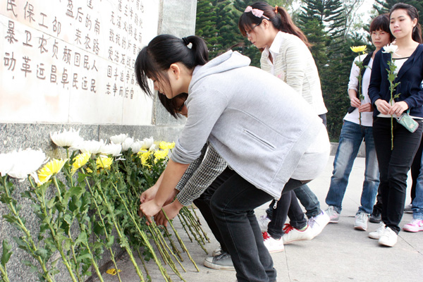 人文学院今天举行清明祭奠革命先烈活动