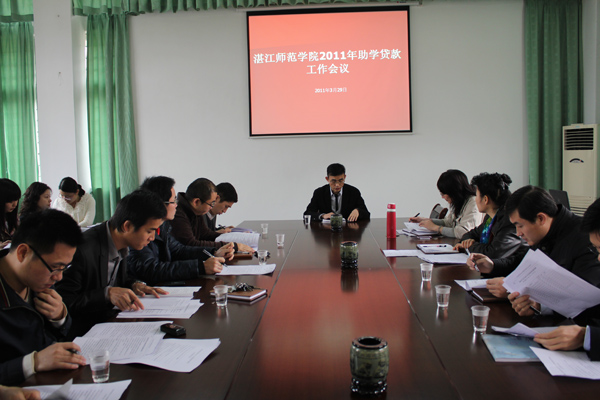 为了贯彻落实我校2011年助学工作会议精神,进一步研究和部署新一年助学贷款工作,3月29日上午,我校学贷中心召开了2011年国家助学贷款工作会议。学生处黄达海处长,钟莉萍副处长,学贷中心老师及各二级学院的辅导员参加了本次会议,会议由谢巧云主任主持。