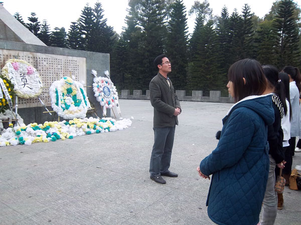 湛师新闻网3月31日讯 为纪念革命先烈,学习烈士们的艰苦奋斗精神, 昨天下午,在校关工委郑光华老师和辅导员全光华老师的带领下,数科院团委组织08、09、10级学生党员到湛江市寸金公园烈士陵园参加“追忆烈士,激励斗志”清明祭扫活动。