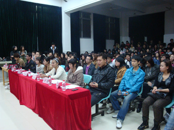 比赛分为化妆表演和才艺表演两个环节。在化妆表演环节中,两名音乐学院和一名数科院的女生上台现场化妆,限时15分钟,由场上观众现场选出优胜者。经过一番精彩的角逐,来自音乐学院的王丹以一票之差险胜,获得“最佳化妆师”的称号。