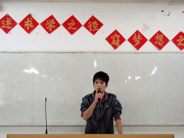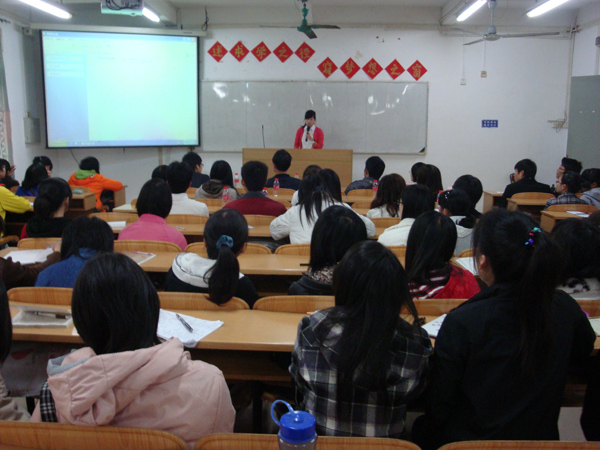 接着,进入了赴台、韩、美学子的经验交流环节。赴台学习4个多月的台湾交换生唐朝丰同学同学们介绍了,台湾屏东教育大学的教学模式、学生的社会实践活动和风俗民情。接着,赴韩国交流学习的关春霞、苏李媚同学分别就所去的韩国忠州大学的师资、设备、学风建设及韩国文化等方面进行了介绍。最后由赴美交流学习的曹明东同学为现场领导、同学讲解了美国的文化、风土人情和生活方式,和同学们分享了他亲身体验的美国教育。