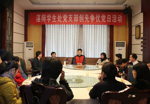 湛师新闻网3月1日讯 创先争优活动是保持共产党员先进性教育活动、深入学习实践科学发展观活动的延伸和深化。去年,学生处通过着力建设“五型机关”(效率型、责任型、学习型、服务型、廉政型机关),以学习型组织创建为主要抓手,将“创先争优”活动与日常工作相结合,将推动事业发展与干部成长相结合,深入推进创先争优活动,取得良好成效。2011年是中国共产党成立90周年,是“十二五”开局之年,也是教育系统全面贯彻落实教育规划纲要的关键一年;今年教育系统深入推进创先争优将以政风行风学风建设为重要载体。为了更好地总结筹划新一年的创先争优工作,2月22-23日,学生处党支部赶在新学期正式上班之前组织了一次到阳西的党日活动。党日活动以创先争优活动总结动员为主题,学生处全体人员热情参与。