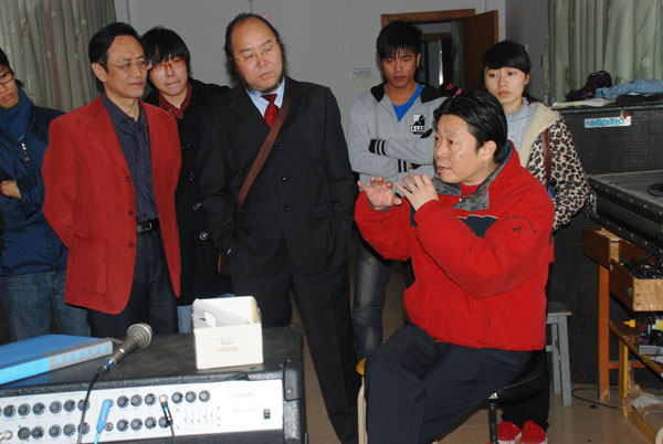 卞留念在欣赏了同学们电声乐与中国民族乐器的演奏后,耐心仔细的示范并指导了键盘、电吉他和电贝斯的演奏注意事项。对“山猫——深澜乐队”激情演奏的新民乐原创作品《战》、外国作品《SHE LEFT ME 》以及原创作品《如何感言》表示十分满意。他还提出要多点积累各种风格的素材,将知识相互融通变为自己的特有知识进行创作。