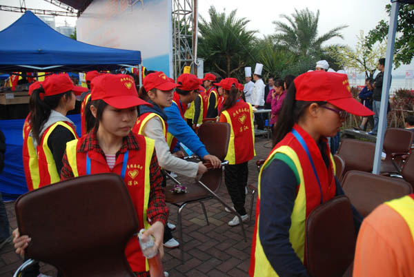 湛师新闻网1月1日讯 志愿服务,助力湛江。我校学生积极响应湛江市共青团的号召,为海博会献出自己的绵薄之力。28日下午,在校团委莫然老师的带领下,我校首批海博会志愿者到达赤坎金沙湾热情服务2010年中国(湛江)海鲜美食嘉年华开幕式。