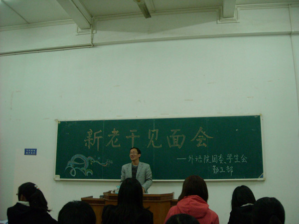 湛师新闻网12月30日讯 为了培养与促进新老干部的感情,以及进行相关的经验交流,外国语学院于12月28日晚在弘雷楼108教室举办团委、学生会和勤工部的新老干部见面会。外国语学院辅导员杨进军老师和蒋悦老师出席了这次的见面会。
