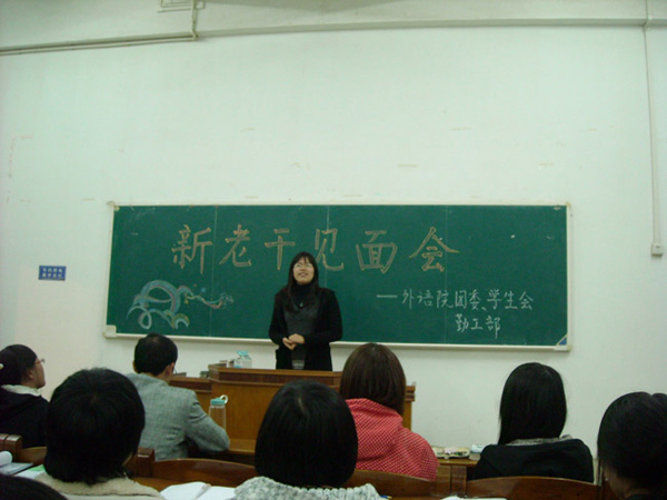 在干部自我介绍结束后,辅导员蒋悦老师和杨进军老师先后上台进行总结发言。蒋悦老师提到了干部的外表和礼仪方面必须大方得体,另外,她还提到犯错误是一个人完善自我的绝佳机会,不应该害怕去犯错误。对于团委、学生会和勤工部的工作,她表示干部们要有创新意识,要在以往的形式上不断地调整磨合,从而更好地完善外语院的每一个细节。