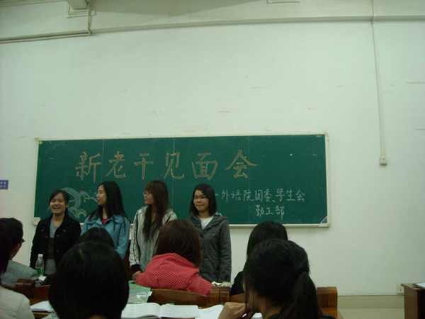 见面会在学生会主席的精彩发言中拉开了序幕,每个部门按照勤工部、团委、学生会的顺序上台进行自我介绍。老干部带着试用干部上台进行的自我介绍,严谨而又带着一些小幽默,干部们纷纷表达了自己日后将努力做好各项工作的决心以及与各部门干部通力合作的美好愿望。对于老干部淡定自然的发言,新干部充满活力的自我介绍,在场的老师和同学们都给予了热烈的掌声。