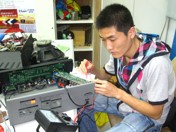 他的电子之路开始于他加入电子协会的那一刻,“电子协会对我整个大学生涯的影响很大,是电子协会让我接触电子世界,也开启了我电子梦想的旅途”,他这样说道。大一的时候他就加入了电子协会,虽然电子协会的办公室只是一间很破旧的小房间,但是里面各种维修工具、各种电器琳琅满目,应有尽有。尽管那时候电子协会的办公室在旧区,可是他很喜欢往那边跑,在师兄师姐的热情帮助下,他学会了怎么使用电烙铁,学会了怎么使用万用表,学会了很多有关电子维修方面的知识。他对工作很认真,无论在何时何地搞维修,都始终把“细心”二字挂在心头。期间,他参加了很多次大型的义务维修,虽然辛苦又疲惫,但是他乐在其中,很有成就感。在这里,他不仅学到了知识,将理论应用于实践中,强化了动手能力,更重要的是还帮助了许多同学。就这样,他在电子世界里忘我钻研、流连忘返,不断摸索,不断进步。