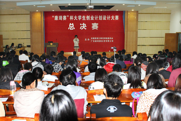 湛师新闻网12月28日讯 为进一步丰富大学校园文化生活,培养大学生自主创业意识,推动校企合作发展。12月26日晚,由我校团委和广东康琦赛投资有限公司联合主办的“康琦赛”杯大学生创业计划设计大赛总决赛在弘雷楼311室举行。担任大赛的评委有商学院夏青副院长、广东康琦赛投资有限公司何洪有董事长、广东康琦赛投资有限公司张谦主任等,校团委李发武副书记、广东康琦赛投资有限公司欧阳深深经理出席了大赛。