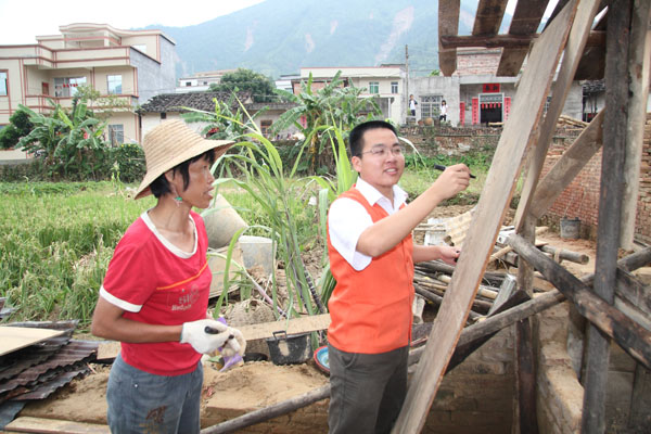 梁剑参加921广东高州水灾志愿活动,为受灾群众书写感谢信
