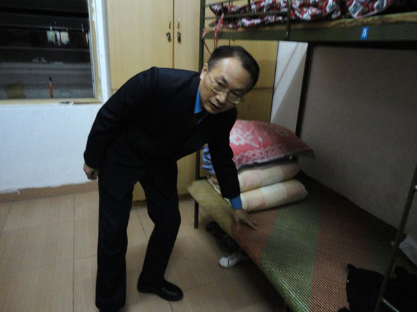 熊家良院长、谢应明书记等领导刚参加完第三次党代会,仍穿着参加会议时的制服便马不停蹄地赶来走访宿舍。每走进一间宿舍,熊家良院长和随行的领导老师仔细询问了同学们御寒的棉被衣物等情况,叮嘱同学们要注意防寒保暖。