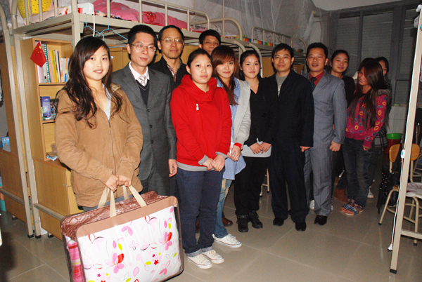 由于近两天天气骤变,校组织统战部及学院领导非常关心贫困生的生活,并利用这次共建活动走访慰问了音乐学院贫困生和少数民族的同学,并为他们送上棉被和慰问金,以解决他们的生活困难。在走访慰问过程中,李处长、陈书记希望同学们克服困难,努力学习,争取更大的进步,以优异的成绩为学校党代会献上一份特别的礼物。黄副书记和谢老师详细询问了同学们的学习、生活情况,鼓励他们发挥积极主动性,克服学习和生活中的困难,并表示如果有需要帮助的可以随时与他们联系。同学们非常感谢领导和老师在最冷的时刻送上温暖和关爱,纷纷表示要以优秀的成绩回报老师。