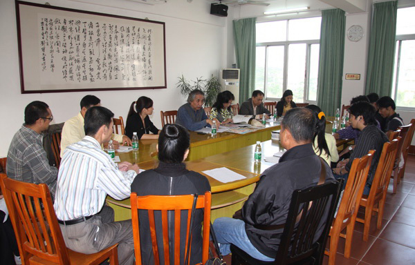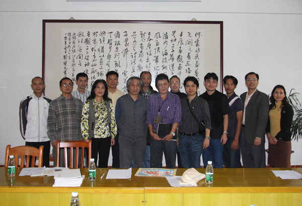 美术学院王黎明院长首先代表该院欢迎泰国朋友们的再次光临,他向来宾简单介绍了学院的概况、专业分类及特色。泰国皇家理工大学教师也交流了他们的美术、陶艺、泰国艺术三大专业和分设的十三个小专业,以及在校教师、学生数量、专业和学校情况。王黎明院长表示,我校美术学院与泰国皇家理工大学建立了长期的友好关系,并派教师多次交流访问,进行专业方面的学术交流,希望此次交流更加增进中泰两国的友谊,也希望泰国朋友为该院留下宝贵的意见。