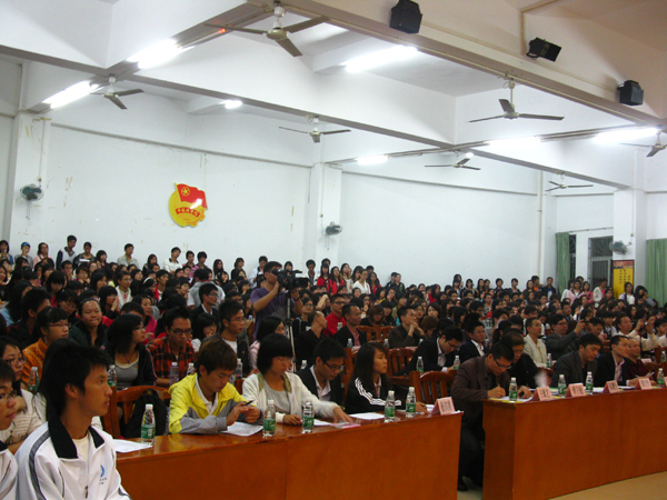 我校招生与就业处钟炳辉处长,湛江国联水产开发股份有限公司彭春梅经理,五洲人才网吴忠总经理,广东万安科技股份有限公司龙东总经理,1978——2008中国企业教育培训百强培训师文城毅先生,湛江电视台梁耀文、周晋北记者,碧海银沙图读湛江专栏李满青记者,湛江科技报朱斌记者,招生与就业处各指导老师和部分社会各界人士以及海大、广医、寸金学院就业社团和我校各大学生机构部分干部等观看了比赛。
