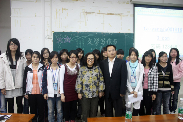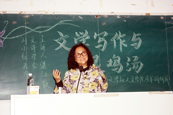 湛师新闻网12月12日讯 今日,由太阳谷文学社和人文学院学术调研部主办的讲座在弘雷楼211举行,湛江散文诗学会刘小红老师为大家作了题为《文学写作与心灵鸡汤——第四届“托起飞翔的梦”散文诗大赛赛前辅导》的讲座。人文学院党委谢应明书记和十个社团代表出席了此次活动,讲座现场座无虚席。