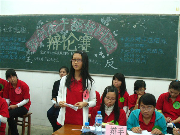 此次辩论赛实行一对一团体辩论赛制,按议定的对战双方和辩题进行比赛,比赛共分三场。正反双方极具特色、激情慷慨的自我介绍正式拉开了辩论赛的序幕,展开了激烈的“口舌之战”。第一场比赛辩题为“大学生学习应以专为主还是应以博为主”,党建、学工办助理联队组成的正方与勤工部组成的反方之间展开激烈辩论;第二场比赛由团委与学生会展开交锋,辩题为“宽松式教育利大于弊还是弊大于利”,各队辩手都在赛前进行了充分准备,并抓住对方辩友的漏洞,引经据典,层层推进,据理力争。