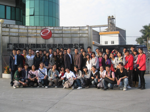 在参观之前,该公司的文经理向同学们介绍了其公司的发展历史。接着,文经理带领同学们参观了公司的生产线,使同学们对饲料的生产有了进一步的了解。同时,我校几位在恒兴饲料公司工作的校友们于现场跟师弟师妹们进行了经验分享交流。在参观中,王老师建议同学们在就业前要多了解社会,了解企业的发展,积极主动参加一些社会实践活动,提高自身各方面的技能,为以后的就业做好准备。