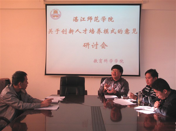 早在12月6日,教科院已通知师生们先在网上学习阅读《湛江师范学院关于创新人才培养模式的意见》。在研讨会议中,张旭东院长首先强调了讨论的目的和重要性,希望大家充分发表意见,为推动我校人才培养模式改革奉献自己的智慧。然后,参加研讨的师生分别围绕会议主题,积极展开讨论与发言。师生们认为《意见》中的指导思想正确,基本思路清晰,任务明确,措施可行。教师们对“错位竞争、内涵发展、特色兴校”的办学策略,“责任以行、能力为重、创新是魂”的育人理念,“负责任、强能力、能创新”的人才培养素质给予了高度肯定。同时对课程结构、学时和学分比例、实践课比例、学位课程、夯实专业基础、教师技能训练、“U-S合作”、女生成才问题、人才培养模式创新与创新人才培养等问题等方面进行了深入的探讨并提出一些建议和意见。