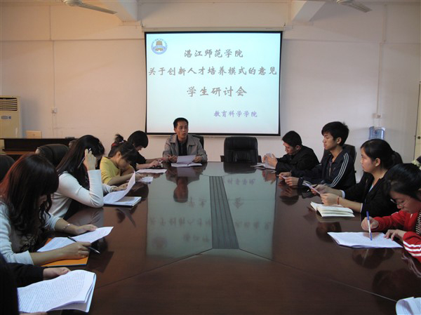 湛师新闻网12月10日讯 为了贯彻落实学校“关于学习讨论《湛江师范学院关于创新人才培养模式的意见》通知”,研讨人才培养模式改革,教科院于12月8日下午在燕雷楼4楼会议室组织师生学习研讨《湛江师范学院关于创新人才培养模式的意见》。会议由两部分组成。第一部分由许占权副院长主持,该院各主要领导和所有老师出席了该次会议;第二部分由郭和才副书记主持,该院辅导员魏珂老师以及各班班长出席了会议。