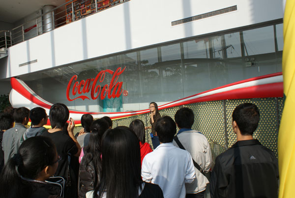 湛江中粮可口可乐饮料有限公司——可口可乐饮料有限公司属下的六大装瓶厂之一。会员们在可口可乐公司参观了文化长廊,在主持人的讲解与带领下了解了可口可乐的成长史与产品的种类和特点,以及参观了可口可乐的生产线。