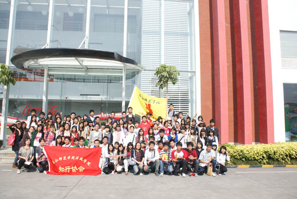 湛师新闻网12月5日讯 为了加深法政学院知行协会的会员对该协会的了解,增强会员们的凝聚力,同时学习现代企业的管理模式,开阔会员的视野。昨天早上,该协会和体科院的双节棍协会进行联谊,共同参观湛江可口可乐公司。