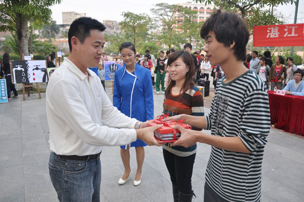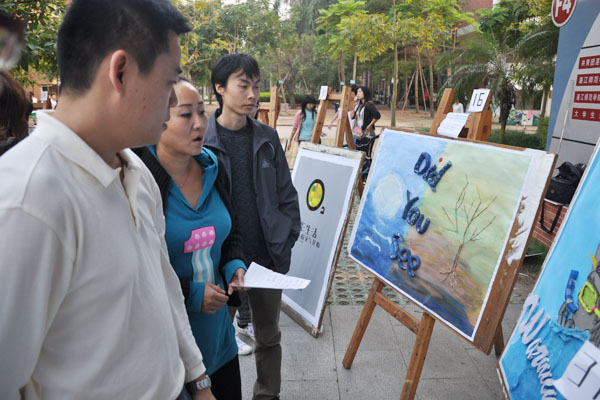 湛师新闻网12月1日讯 11月27日,由校团委主办,校团委宣传部和美术学院团委承办的第三届海报设计大赛在鸿园一楼门前举行。校团委李粤书记、莫琼玉老师、莫然老师出席了此次活动,美术学院设计系钱峰老师与何远敬老师担任此次海报设计大赛的评委。