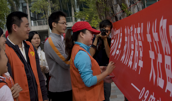 李粤书记观看了现场留守儿童照片,感慨良多,接着在宣传横幅上签名,呼吁同学们要时刻关注留守儿童。李粤书记和詹绍姬老师在活动上表示,社会上各个单位、社会各界,包括学生在内,都应当发挥自身的优势,从不同侧面关注留守儿童这个群体,开展形式多样的关爱行动,为他们解决成长中的困难和问题,使他们能够在祖国大家庭中感受温暖,健康快乐幸福成长。
