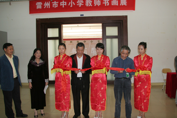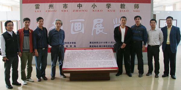 湛师新闻网11月28日讯 26日上午,美术学院与雷州市教育局共同主办的雷州市中小学教师书画展开幕式在咏雷楼五楼展厅举行。美术学院李爱群书记、王黎明院长、林志军副书记、巨云和副院长、湛江市教育局体卫艺科韦汉平科长、美术学院办公室黄锦敏主任、雷州市教育局吴伟华股长、卓明山股员、湛江一中艺术组组长、湛江市和雷州市部分中小学美术教师及美术学院部分老师、学生参加了此次开幕式。开幕式由李爱群书记主持。