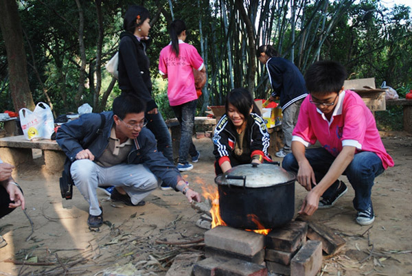昨天早上,校团委李粤书记与09级汉语言文学专业的男生进行了一场友谊篮球赛。校团委李发武副书记和数科院辅导员黄展老师以着学生的身份参与由数本1班和2班联合举办的班团活动——户外烧烤活动。